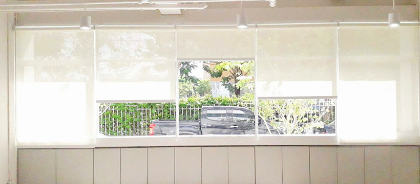 ม่านม้วน แบบทึบแสง ภายในห้องออฟฟิศ สำนักงาน